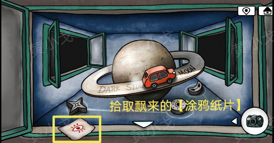 17.点击石壁上的小鸟浮雕,把【涂鸦纸片】放入浮雕眼中