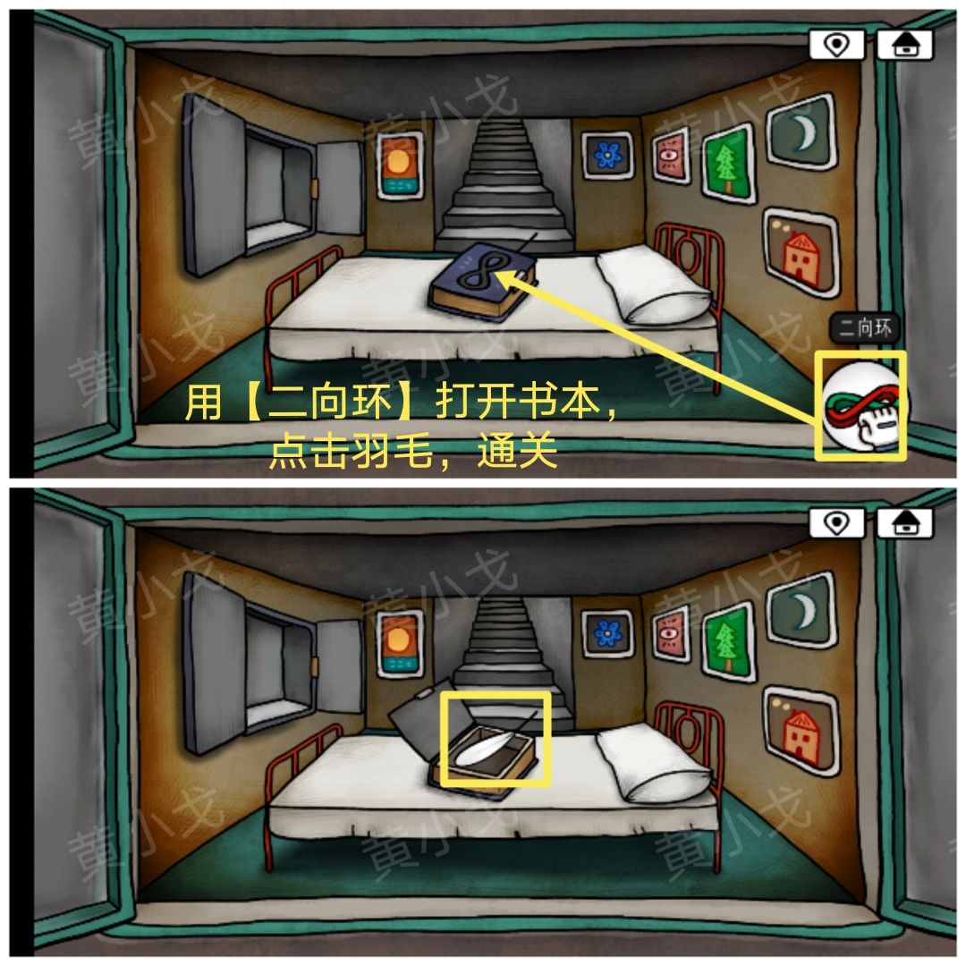 38.用【二向环】打开书本,点击羽毛,通关
