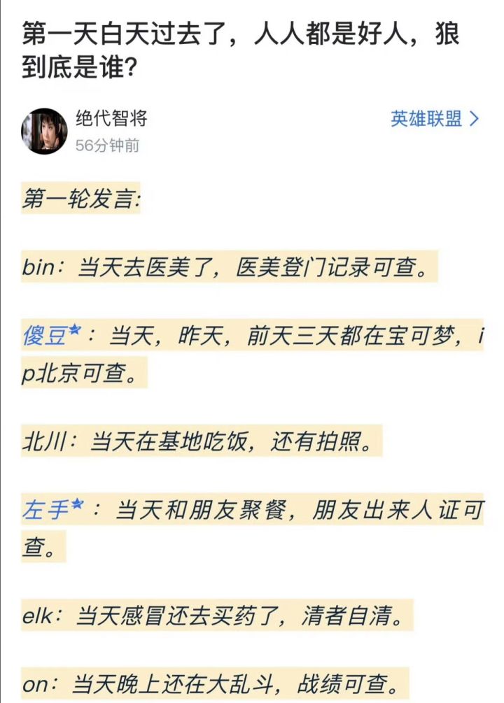 而面对质疑,几位选手陆续给出了回应:Knight直播说28号晚上先健身,之后和Wayward一起吃饭玩桌游;Elk晒出买药订单,说自己感冒了吃完晚饭就睡了;Shad0w发微博说自己三天没出门肝宝可梦,IP显示在北京;Beichuan被粉丝拍到独自在面馆吃面,Bin则有消息说去做医美了,相关回应发了然后又删 。