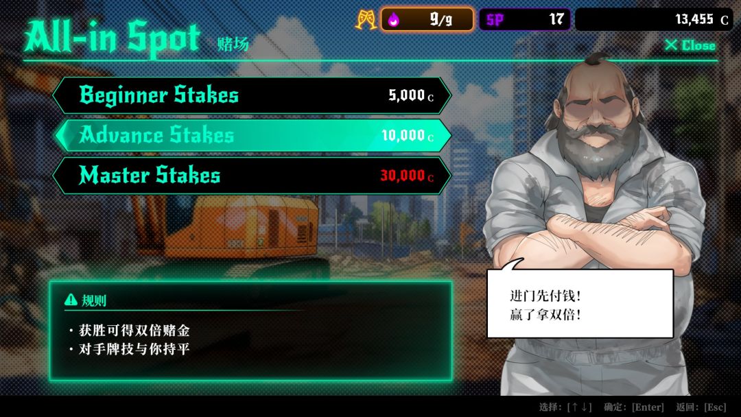 不过,这里是赌城,这里的赌博方式又跟现实中的不太一样。在赌城,要赢走对方的筹码才算胜利。在这里,筹码可以视为游戏中的生命值。赢的时候牌型越大,能让对手损失的筹码就越多,等同于伤害越来越高。随着双方的堵住越押越多,伤害倍率也会越来越高。