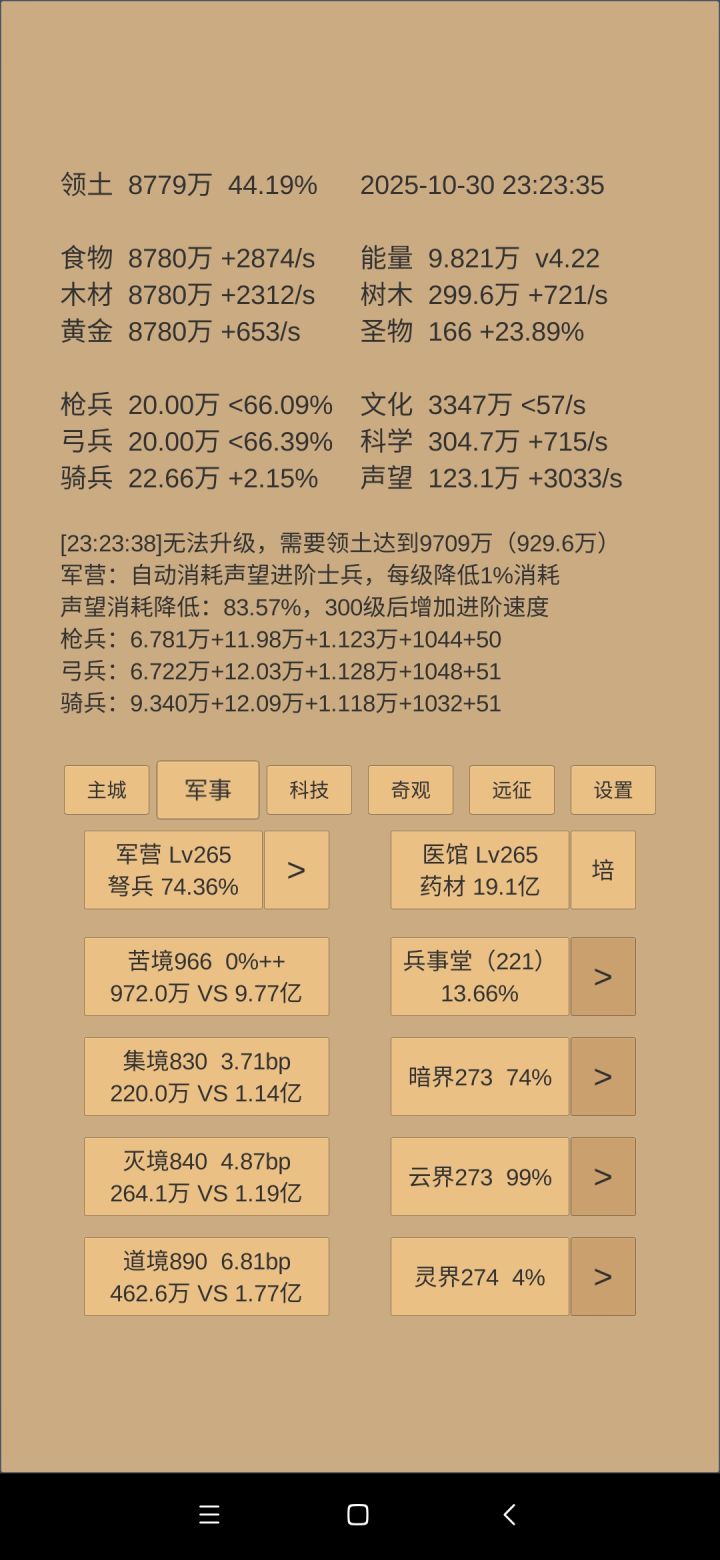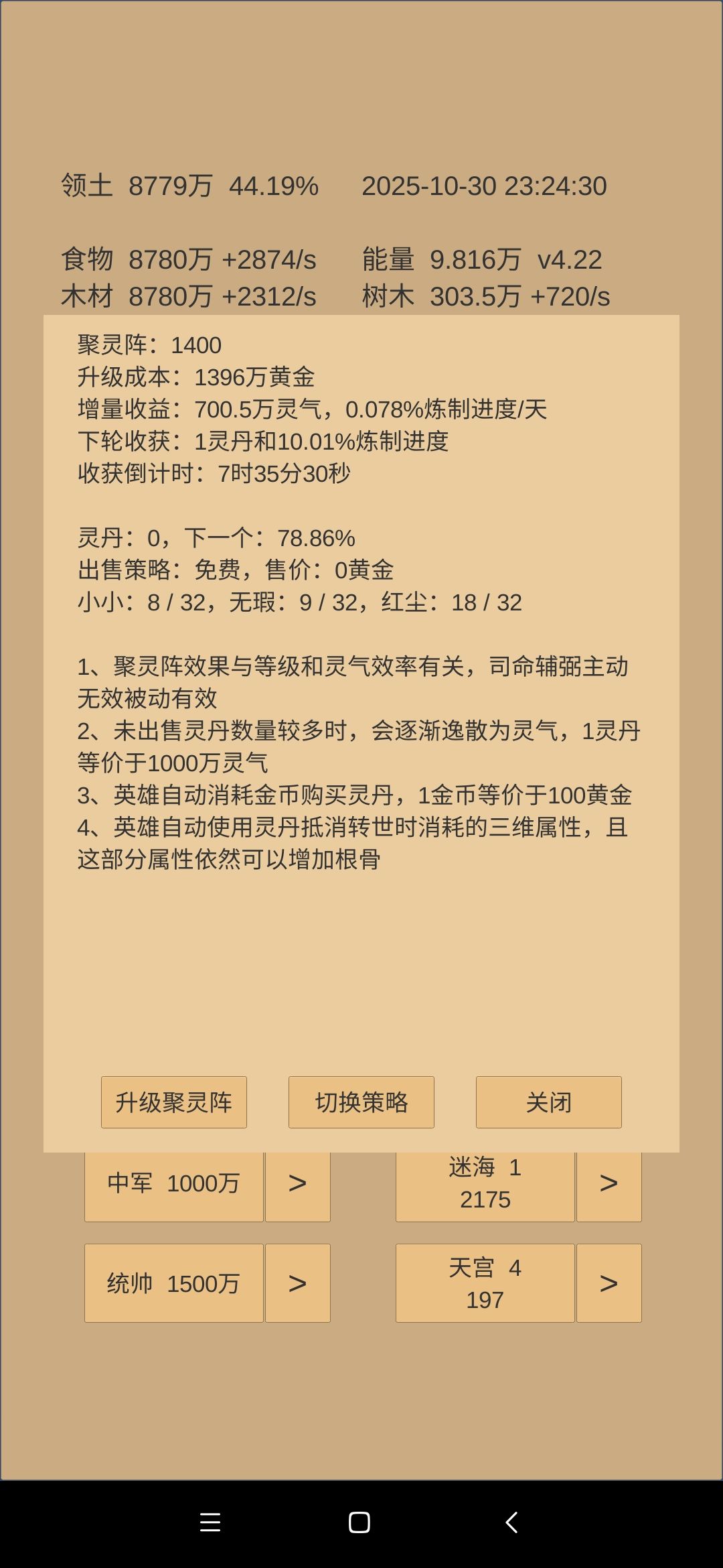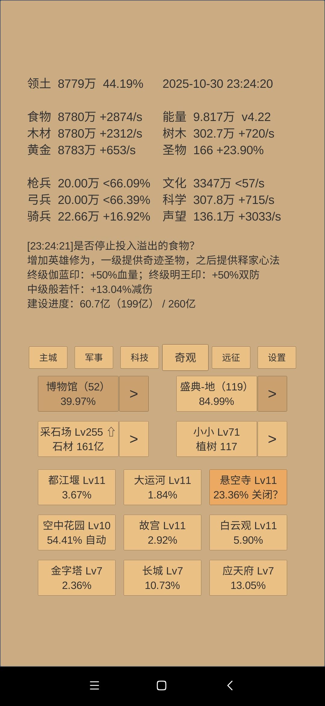 就纯展示吧,反正大事件也就杀了个百济,计划外的事情也就额外又升了50级聚灵阵,其他都和上次说的一样,继续磨就是了,回见。