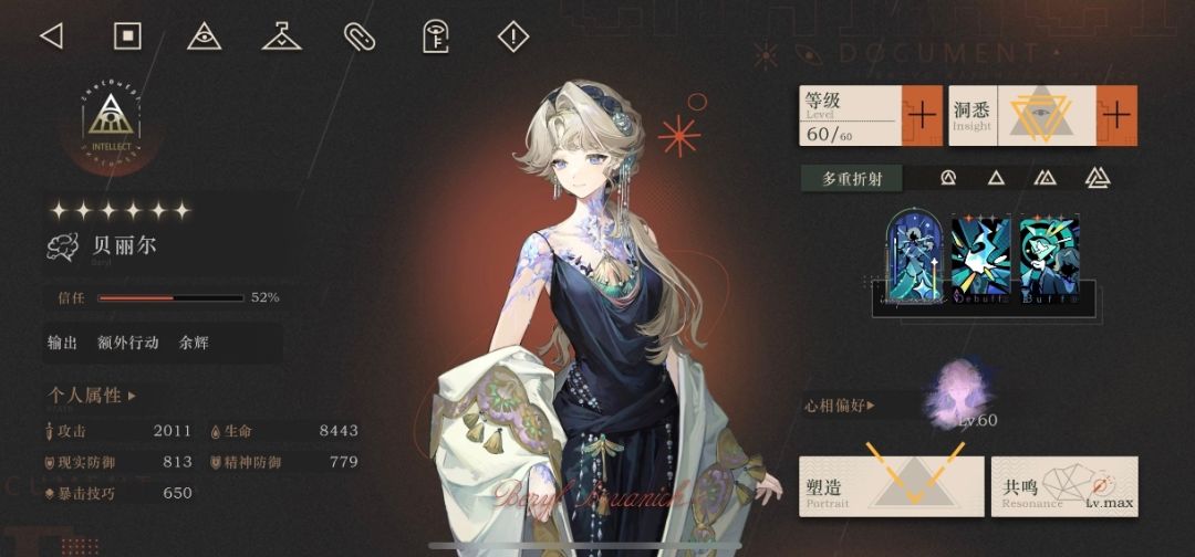 贝丽尔的所有玩法均围绕“余辉积累-光晕附着-劫数难逃触发”展开: