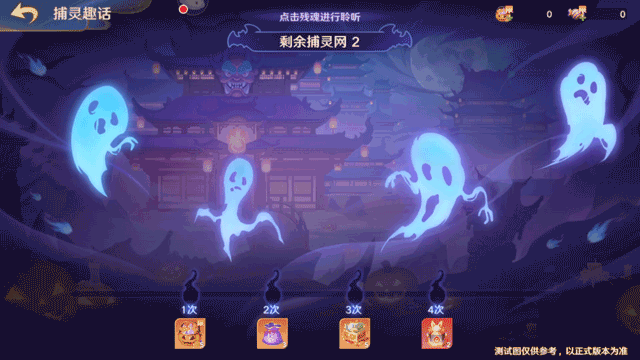 守护使大人可在捕灵趣话版块内消耗捕灵网来捕捉灵体,听取宴会中发生的趣味小故事,并领取道具奖励,捕灵网将随活动时间每日增加,阅读完所有故事,可累计获得以下奖励道具:糖果礼篮*5、高级随机宝石袋*3、秘藏之匣*5和典藏玩偶任选*2。