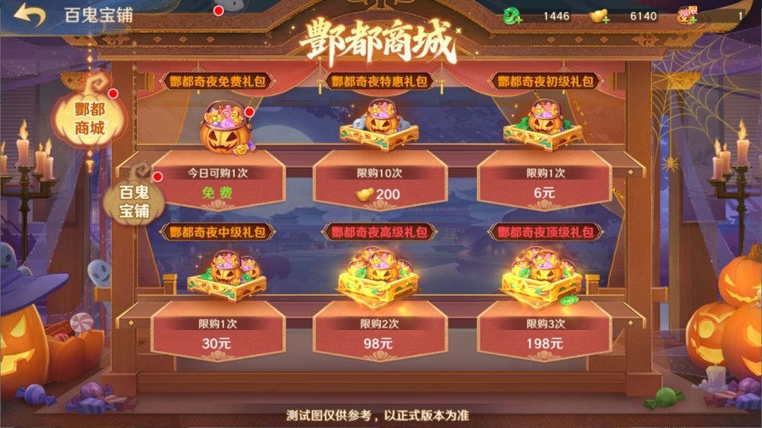 活动期间,守护使大人可在百鬼宝库的酆都商城分页里,每日免费领取酆都奇夜免费礼包*1,还可使用元宝在此累计购买10次酆都奇夜特惠礼包,如此福利可千万别错过~