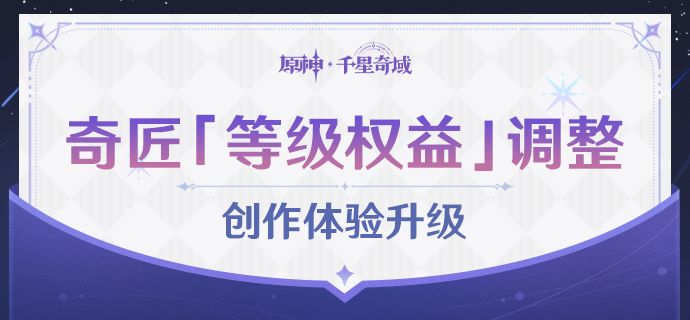 近期制作组收到了许多大家关于奇匠等级提升与相关功能的反馈与建议,为了进一步优化创作体验,降低创作门槛,我们对奇匠等级和对应的解锁功能进行了以下调整。
