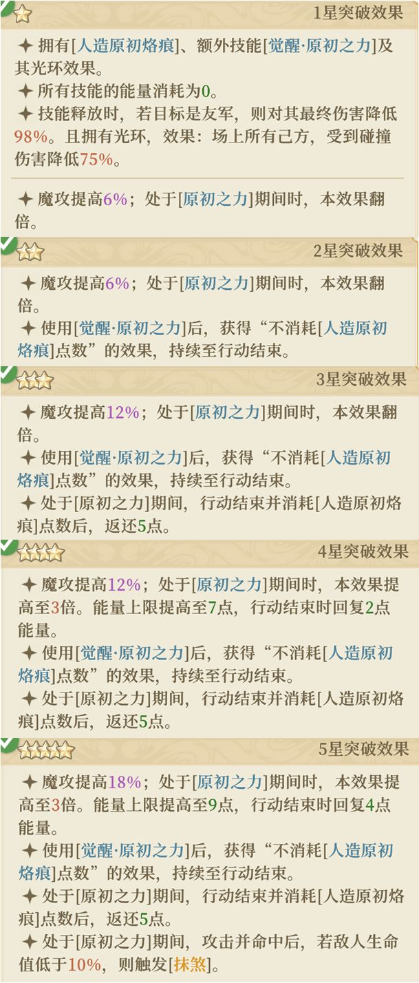2、4-5星都有不错的提升!5星配合队友可以解开回复烙痕的被动!