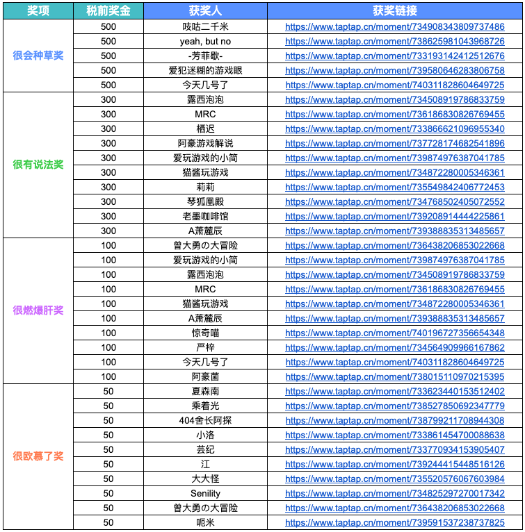 开奖公示时间为12月16日~12月25日,获奖作品在公示期若核实为抄袭等违规作品,将直接取消作品获奖资格。公示结束后,现金奖励将通过「 TapTap 创作者中心」进行发放,请注意查收!