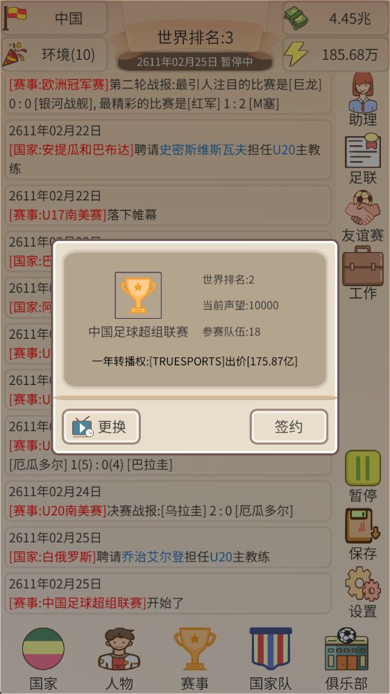 最早23年玩的,那时候足协模拟器,发过一次贴。后来估计版权问题下架了,今年换成足协掌门人回来了,依旧如故,无广告,不保存退出重刷赛事,我觉得这个游戏sl毫无意义。