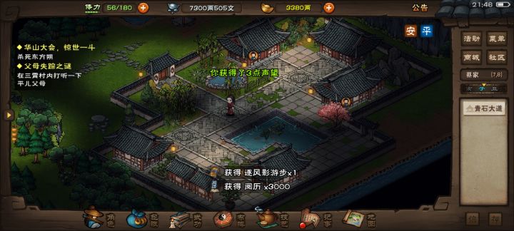 等待10分钟后,杭州(32,10)钱庄门口继续剧情,随后(35,10)对话刘铭,接着(32,10)对话蔡武(此处选择“我吃两条”),(23,13)楼外楼上二楼雅间,二楼雅间走到(3,2)处触发剧情(剧情结束后选择“我吃两条”可以获得30体力),前往杭州(32,11)对话刘铭,结束杭州剧情部分