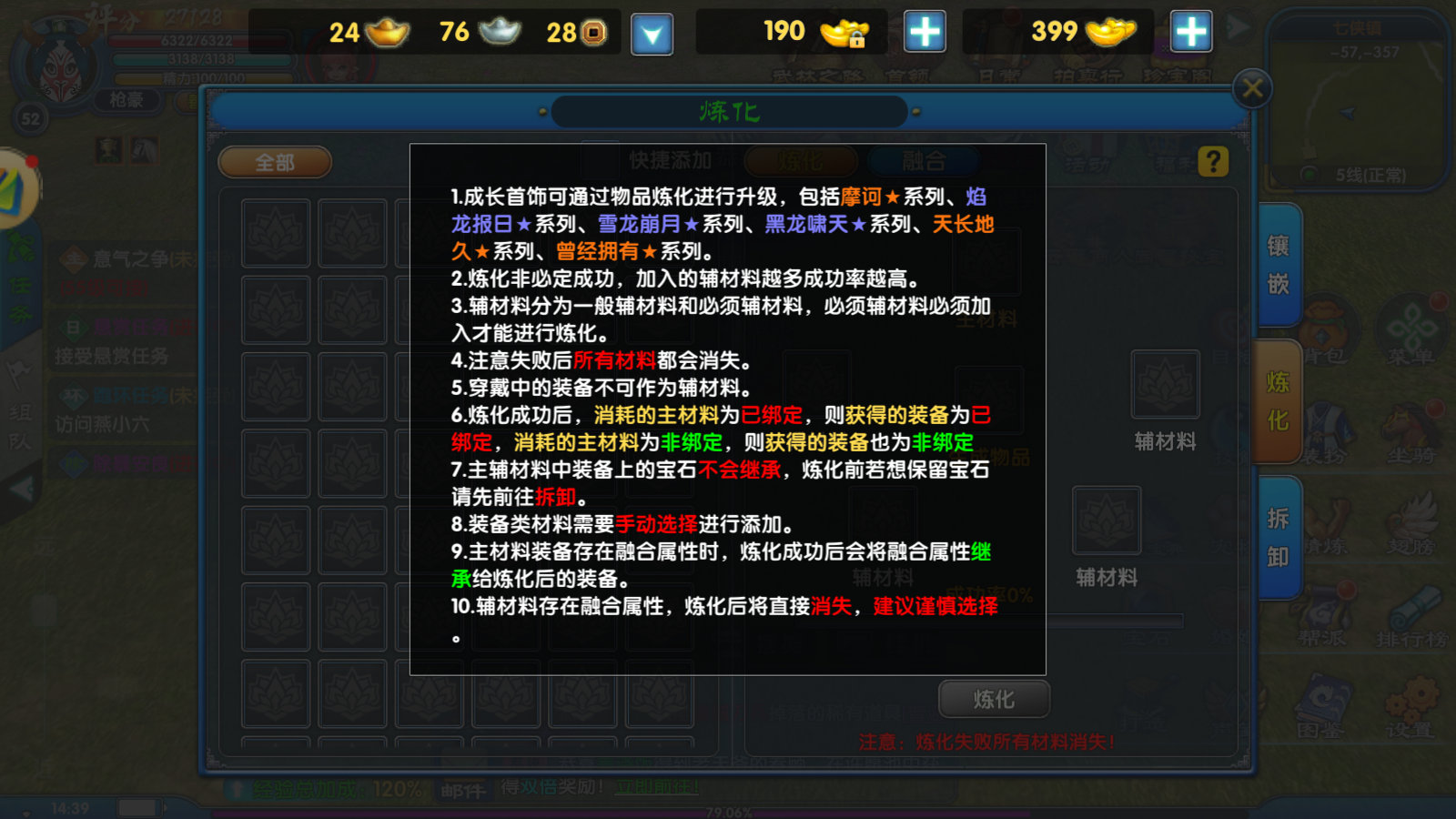 - 炼化界面新增 “融合” 分页,可对 “摩诃系列”“三龙系列” 饰品进行融合操作。