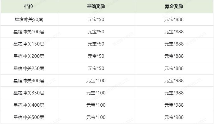 *注:11月星宿限时开放一队,持续一个月,好汉们努力冲层吧~