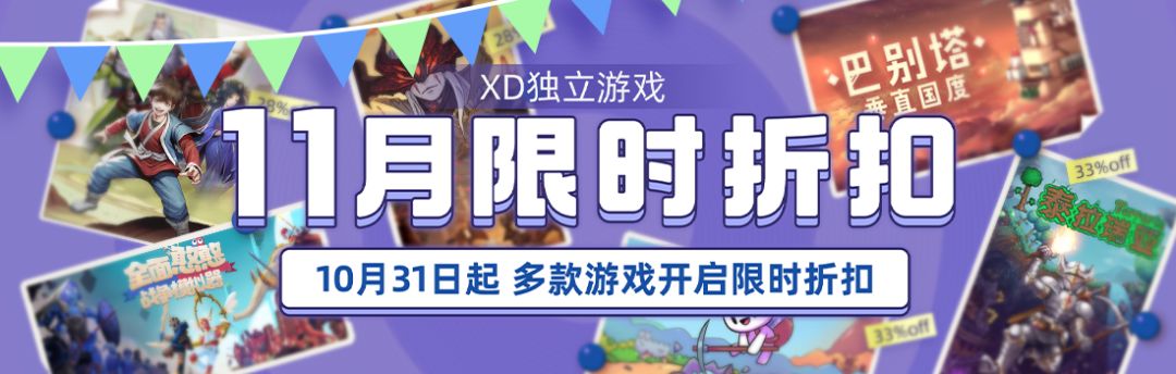 万圣折扣敲门——10月31日开始,XD独立游戏限时折扣已经开始,各个游戏会在不同平台陆续开启折扣,今天就来先跟大家预告一下近期有折扣计划的游戏们。
