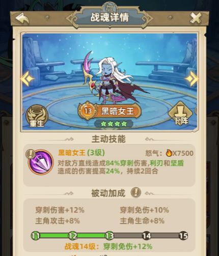 黑暗女王 - 高额直线穿刺伤害,2回合20%穿刺增伤,穿刺系强力战魂。