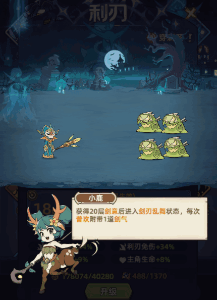 利刃是冒险者们解锁的第一个穿刺系英灵,主要通过纵列剑气、叠加剑意、开启剑刃乱舞状态等方式进行高额单体输出。局外等级提升至18级和30级,即可在战斗中解锁被动【剑刃乱舞状态】和技能【剑气横扫】两大核心选项,巨幅提高造成的伤害。