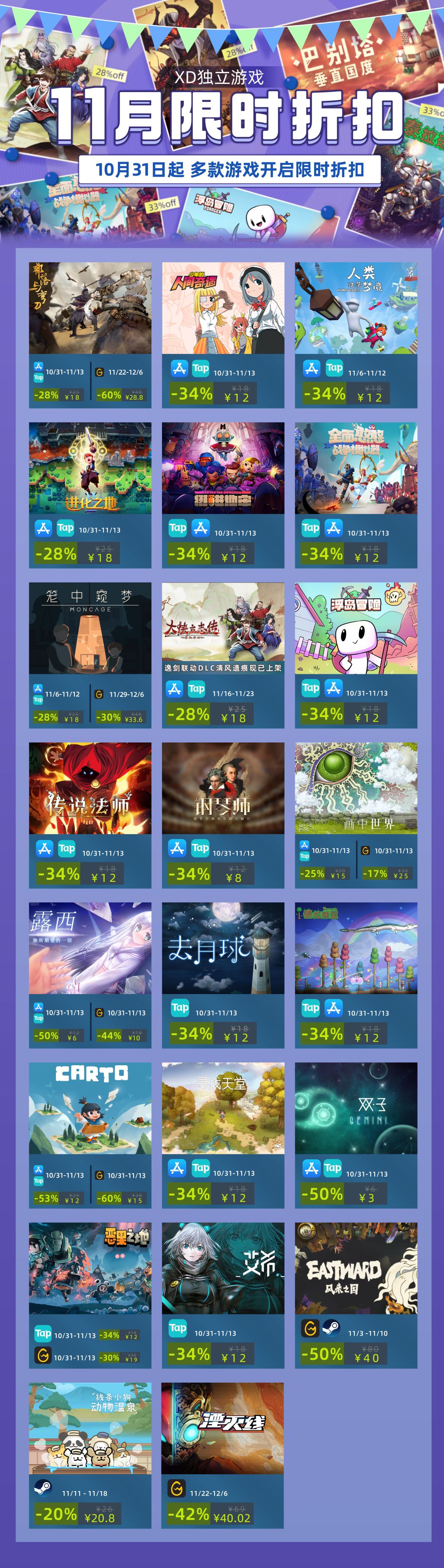 关于其他独立游戏本次的折扣信息,各位可以在帖子最方的长图中详细了解。
