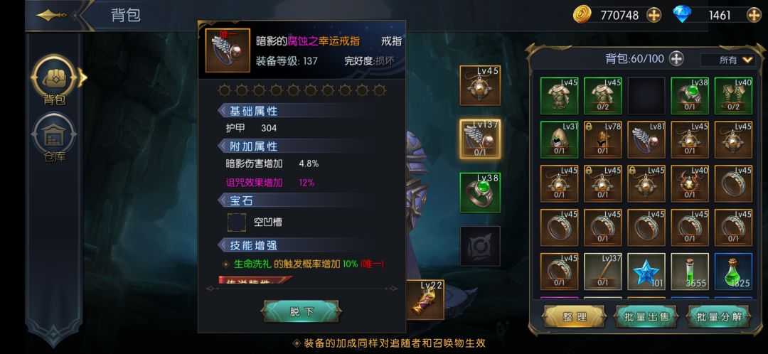 这个是没实装还是bug,我准备堆一下生命洗礼,身上的减cd,减消耗穿上都能看到效果,但是这个概率的戒指,穿上脱下技能概率都不变,我检查了我别的部位,没有同名的,不存在因为唯一不生效的情况。请问下这个什么情况