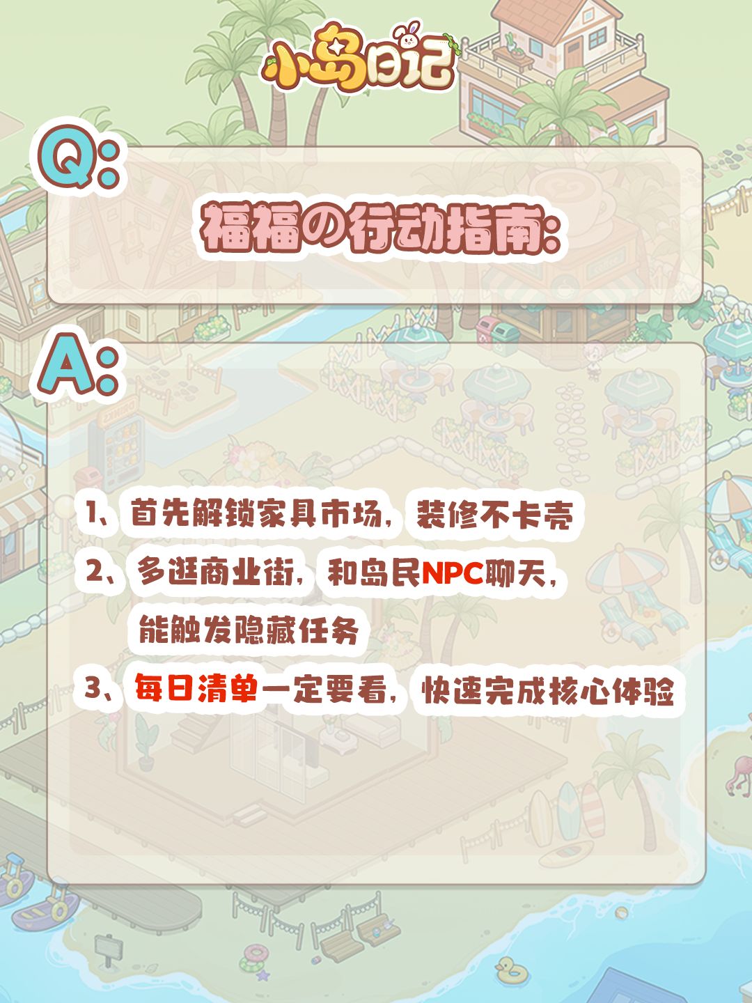 ✨在11月4日正式登岛前,请务必收下这份「独家岛建指南」,轻松玩转小岛每一天~