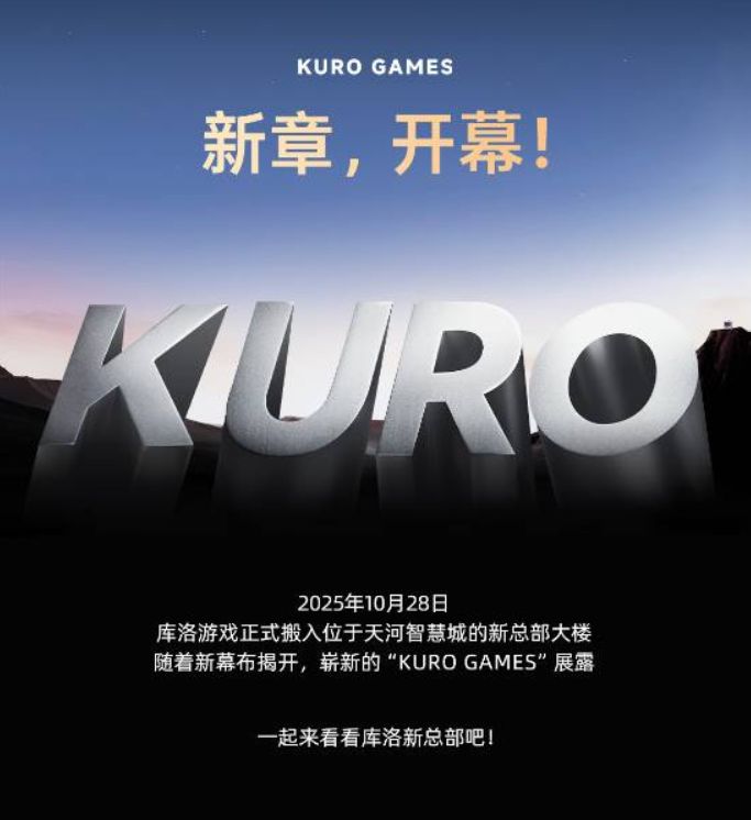 10月28日,库洛游戏新总部乔迁仪式圆满落幕,正式入驻广州市天河区高唐路天河智慧城时代E-Park2期10栋。这一全新坐标标志着公司发展迈入新里程,库洛官方发文感慨 “在挑战中不断进化”,并向玩家喊话 “老朋友,新起点,共赴更好未来”。