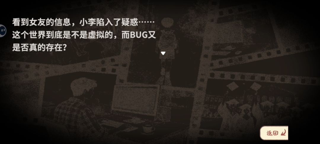 还有最后女友似乎也有了这项特殊能力的事情,也可以穿插一点剧情(就比如跟小李说今天乘坐公交车的时候目击到了车祸,而她也差点被连累到。但是在女友觉醒异能后,她通过车站公交车的到达时间改变,救了人,最后后怕似的跟小李聊起这个文字BUG的存在。),这样不仅可以让玩家怀疑是不是人人都觉醒了文字BUG,还能在小李后面发生重大抉择时起到很好的伏笔。