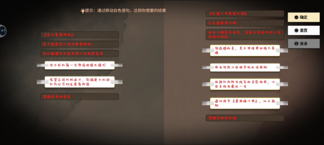 另外,玩家也能通过一些语序来推测出正确答案,这多少考验了一下玩家的语言理解和组织能力,这也是虐脑子的一种方式啊