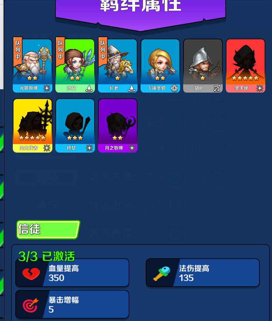 最重要的是英雄激活羁绊,前期很多英雄羁绊,不用在意英雄星级和颜色,只要能激活羁绊即可