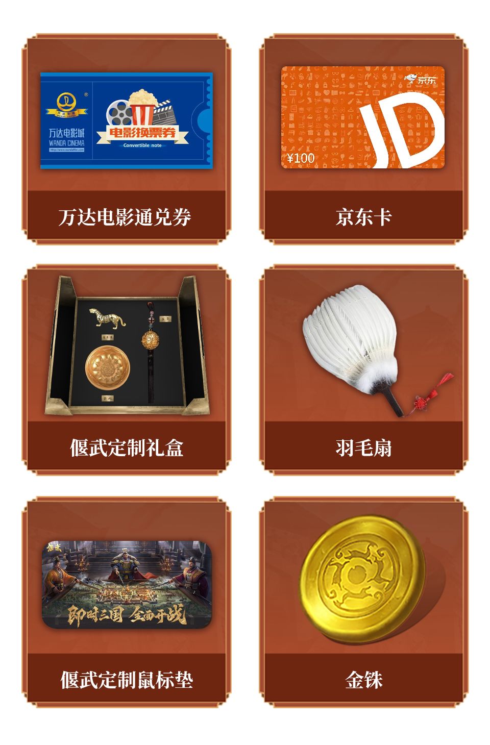 ● 幸运主公还有机会获得京东卡,万达电影通兑券,偃武鼠标垫,偃武定制周边礼盒!
