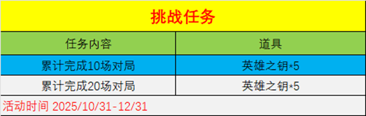 挑战任务的时间与登录任务一致,任务内容为累计完成10场、20场对局即可获得“英雄之钥*10”。这个任务设计对大多数CFer来说非常友好,毕竟20场对局在足足两个月内完成并不算难事。值得一提的是,这个任务可以与日常任务同步进行,让你在完成日常对战的同时,还能额外获取珍贵的“英雄之钥”,可谓是一举两得。相比于登录任务,挑战任务给了玩家更大的自主权,可以根据自己的时间灵活安排时间。