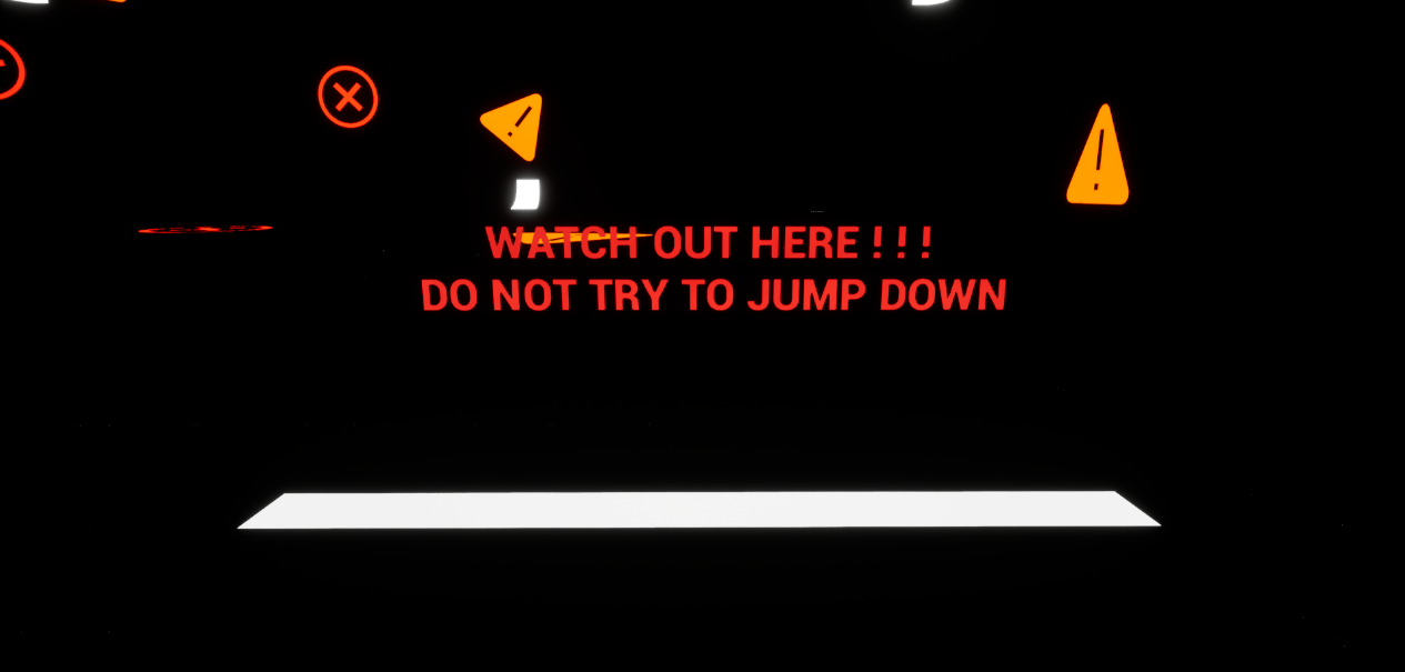 出门之后有个提示说“不要跳下去”,跳下去会传送回来