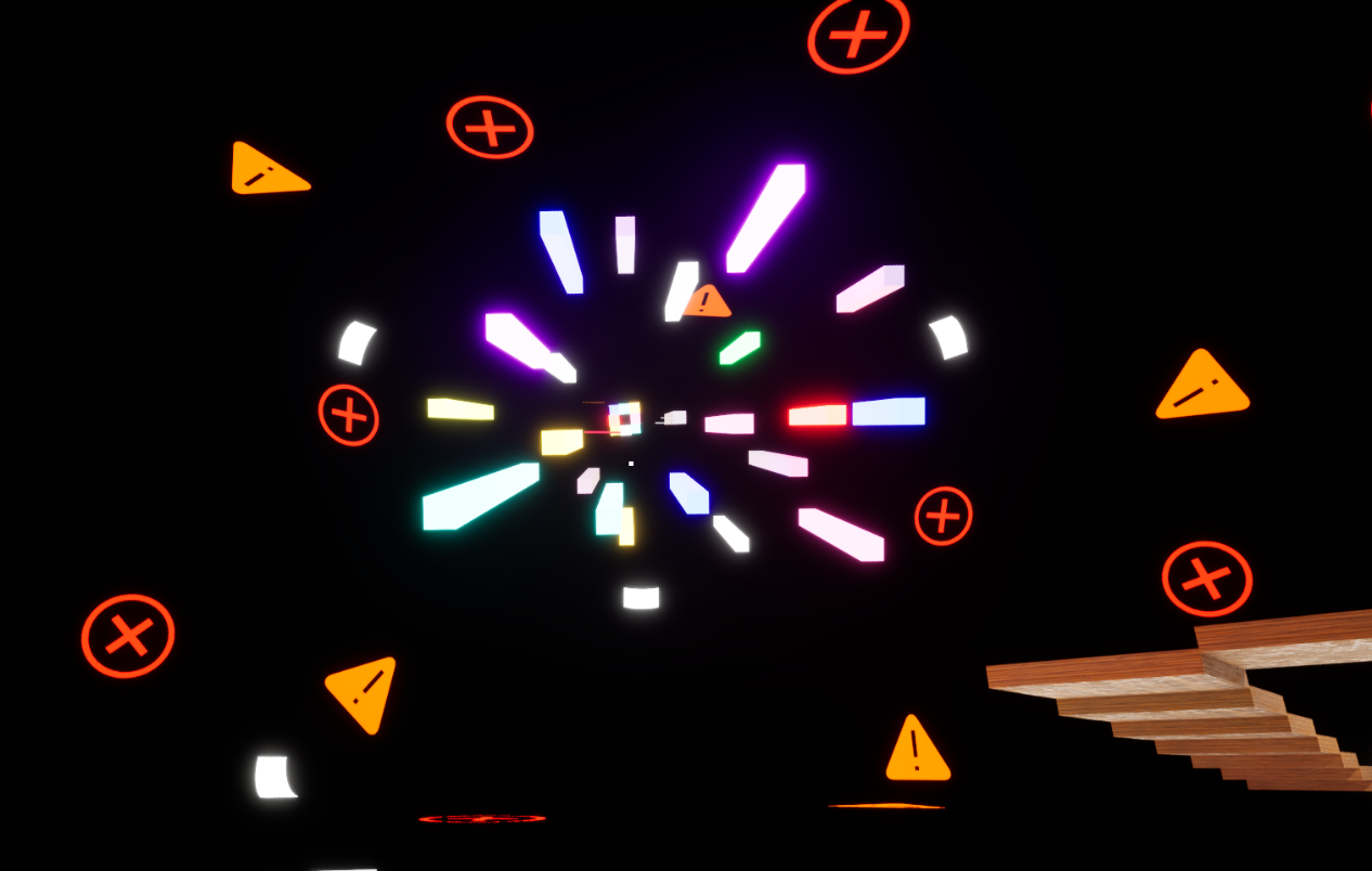 通关之后回到大厅,看到这个地方,在物理学上,称其为”彭罗斯阶梯“,它也是视错觉的一种,但是你想怎样让它看起来是一个无线循环的楼梯呢,你需要俯视角,从上往下看,可是你不会飞,怎么到这个点呢,那么这里我加了彩色线条闪烁提示,你走过去,就会自动上升,到达特定地点后往下看,它就是一个无限循环的楼梯了,此时你也会进入到子关卡中。