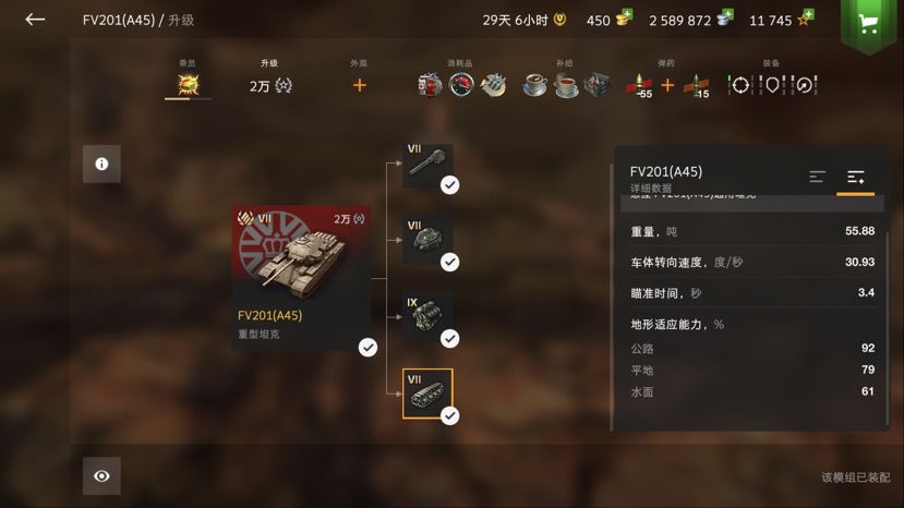 打法:作为一辆高机动的Y系HT,A45强大的头部可以支持她卖头卡坡,而十分脆弱的车体装甲又不能让她在一线输出..A45是一辆1.5线火力支援型HT,配合机枪般的速射火力,A45适合收残与补刀,必要时可以带头冲锋强换落单车,虽然换血能力很强,但A45非常吃队友,切记!!不要落单!一但被集火,A45会死的很惨