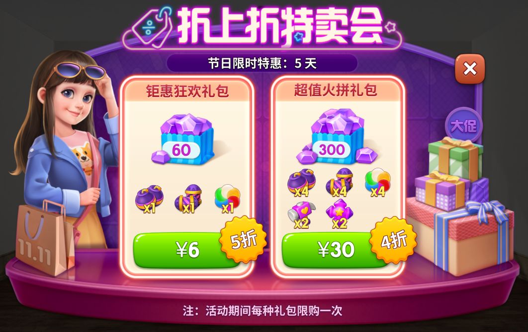 除了钜惠礼包,这里还有道具兑换活动!参与“吃货大排挡”,关卡内收集叉子获取美食,即可兑换超值道具礼包,简单不套路,快乐更加倍~活动时间是11月10日至11月11日,设计师们千万不要错过哦~
