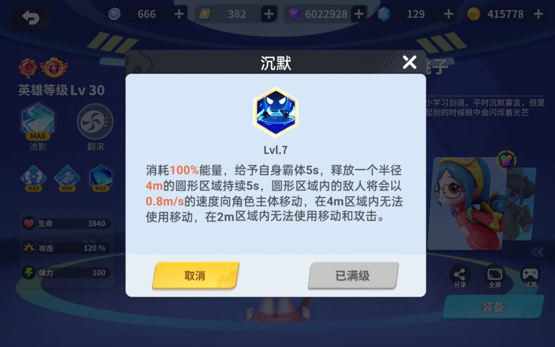 当角色处于未被外力控制或扑倒状态时 单点未充满的大招 消耗10%能量给予自身和镜像0.3s霸体 霸体期间敌人无法对角色及镜像造成控制
