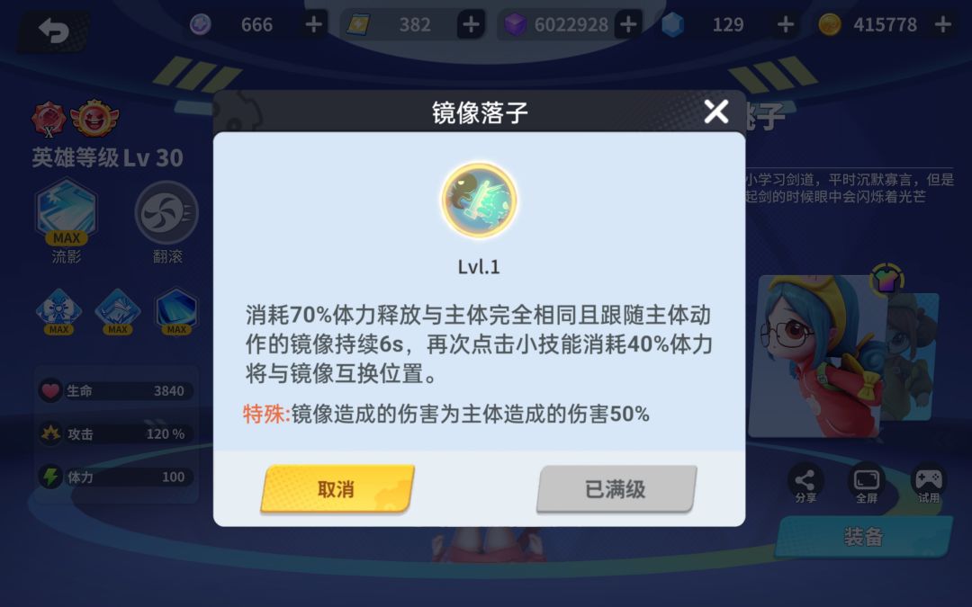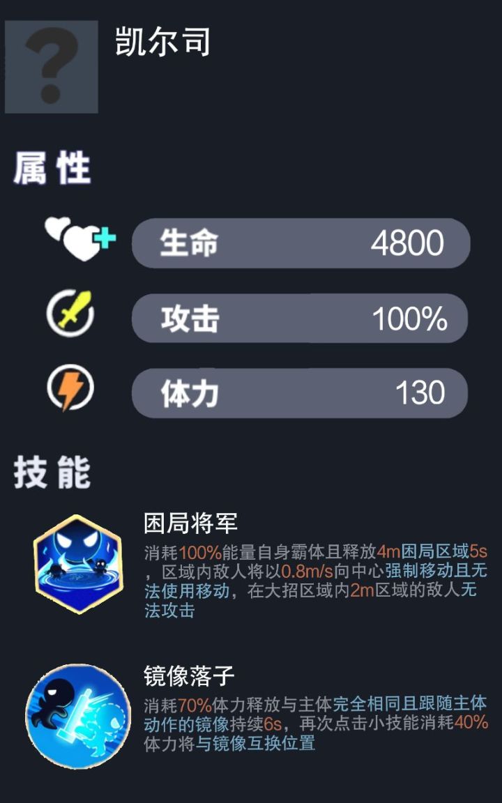 当使用小技能且当前体力大于40时 可消耗40体力释放二段 释放后主体与镜像切换位置 敌人无切换表现 主体与镜像只互换血量 位置