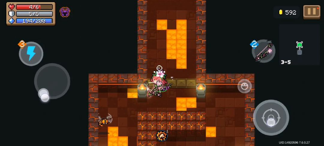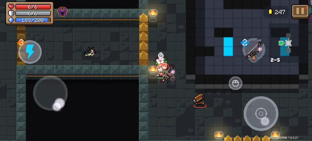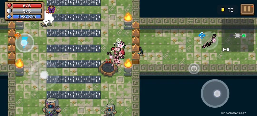 (五)城堡关,下面简称骑士关。骑士关是古早年代一村关卡,后来挪到二村了,其中有各种骑士、法师和史莱姆,还有对应的boss,敌人强度比较正常,有不错的弹幕密度,可以体验走位以及和敌人对射的快乐,boss强度也中规中矩,是正常的弹幕机器,总体上是优秀的弹幕地图,需要一定走位和手法,给人上人。