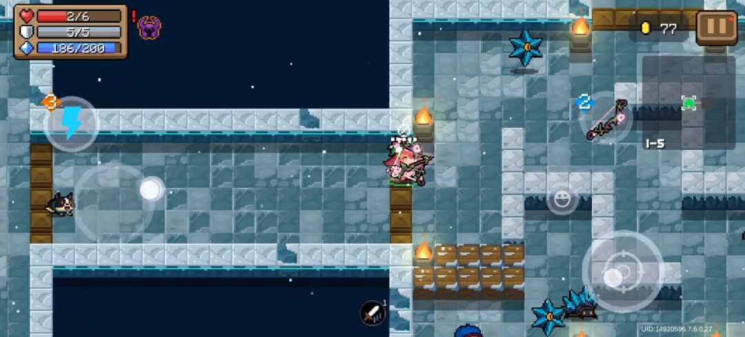(九)溶洞关,雪原关隐藏关卡,也是你元第一个隐藏关卡。强度不错,有各种矿工、机器人和水晶巨人,还有一个很有特色(很狗)的boss,只算敌人的话和骑士关体感接近,也是躲各种子弹和爆炸,但是这关有个极其变态的冰面设计,玩家在上面会打滑,直接大幅增加整体难度,狗王boss配合冰面也是阴到没边了,这种增加难度不是爽,只是单纯的为难而难,本来给拉爆了,但是这关的无伤因子不错,是三个无伤因子里最好的,综合给NPC。