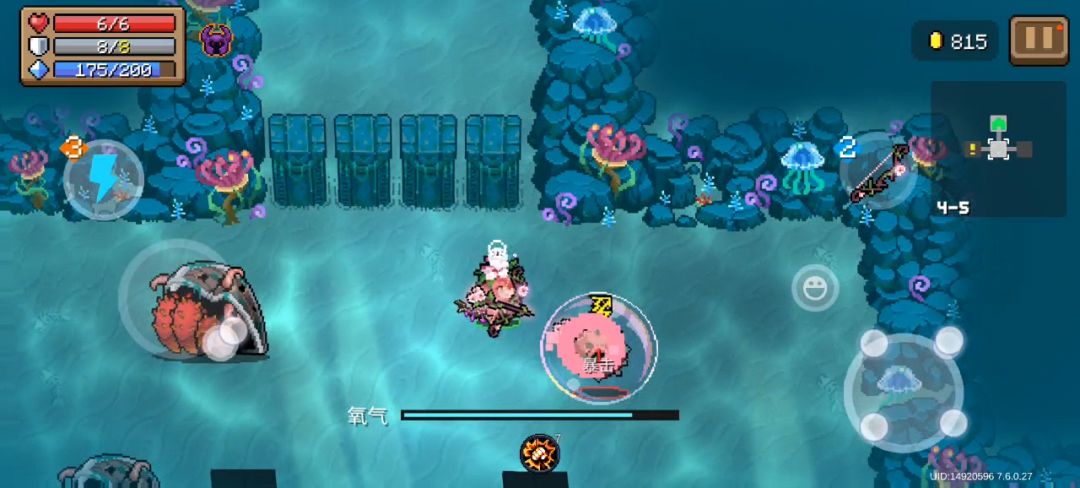 (十七)海底关。早年间的五村,后来被大削成四村了,直接砍废了,这关是最适合手刀的关卡,从小兵到boss都适合手刀,建议可以直接拿来练习手刀。只考虑手刀爽度的话那应该是顶级地图,但是这关的气泡和氧气系统实在是太烦人了,逼着玩家不得不找氧气,气泡还必须拿高攻速或者近战武器打,属于是官方直接放弃狙击枪玩法了,而且这关也有文不对题的问题,名叫海底,但是icon是几朵浪花,boss叫深渊潜航者,但是地图半点深渊元素都没有,综合上面这些槽点给到NPC算了。