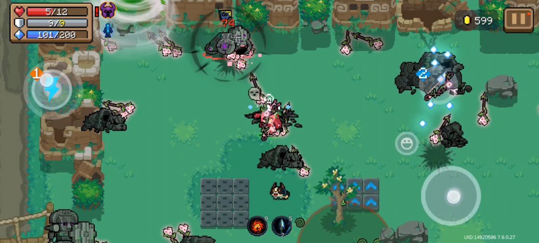 (一)首先是森林关,元气较古早年代的经典关卡,开场bgm就是森林关的背景音乐。森林关有巨量的哥布林和动植物小兵,还有各种哥布林和动植物boss,强度一村倒二,没啥亮度,但也没啥恶心玩家的地方,唯一值得注意的是不要被回旋镖给连死了,综合给NPC。