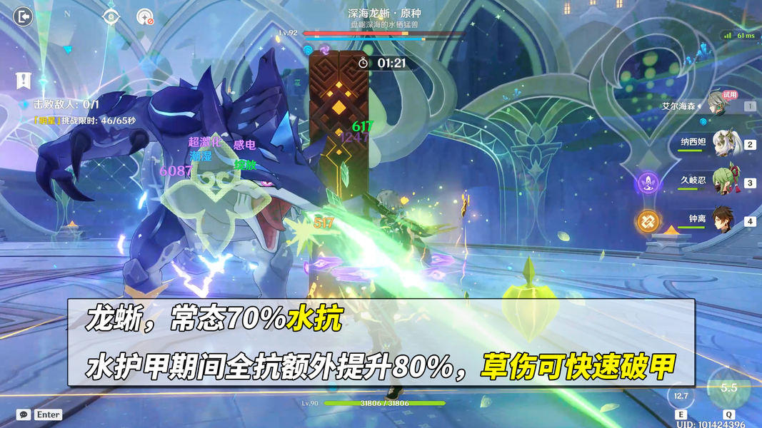 第六幕「历经百战的深海龙蜥·原种」常态70%水抗,水护甲期间全抗提升80%。不破甲基本打不动,并且期间会不断吸收我方元素能量。