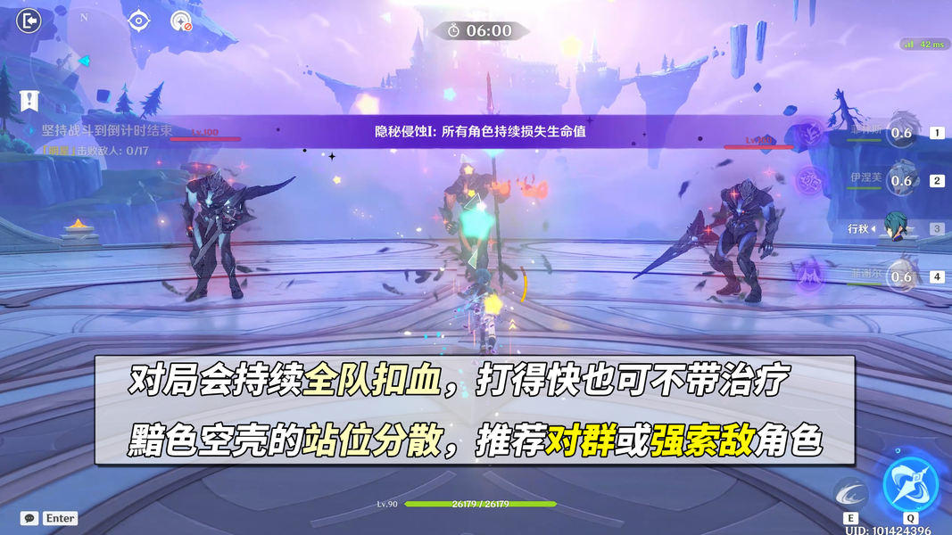 圣牌挑战一「消灭17个黯色空壳」。期间会缓慢扣血,建议带治疗辅助,配合群攻主C。