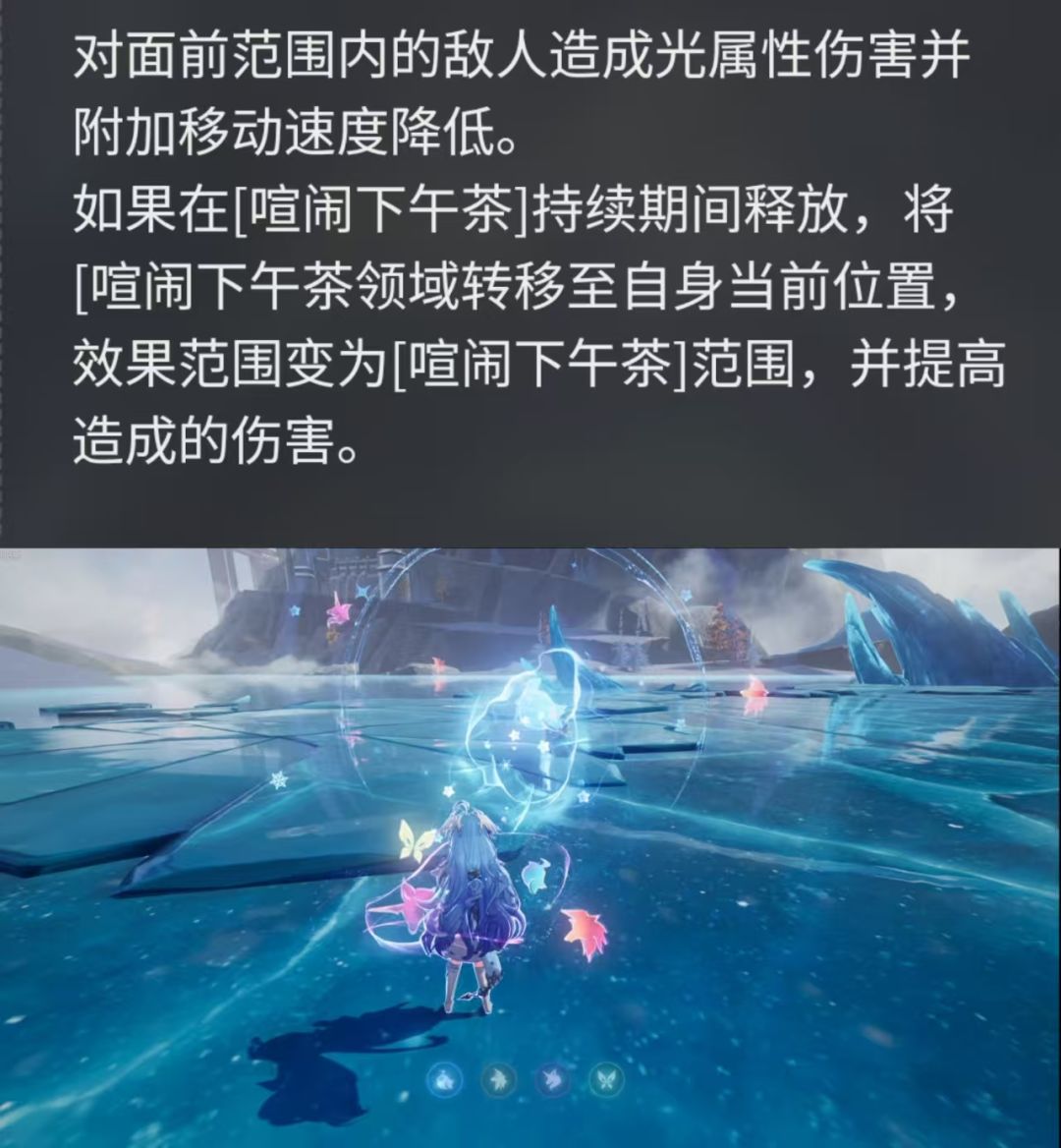 小技能以自身为中心持续放奶治疗,同时敌人会减速。