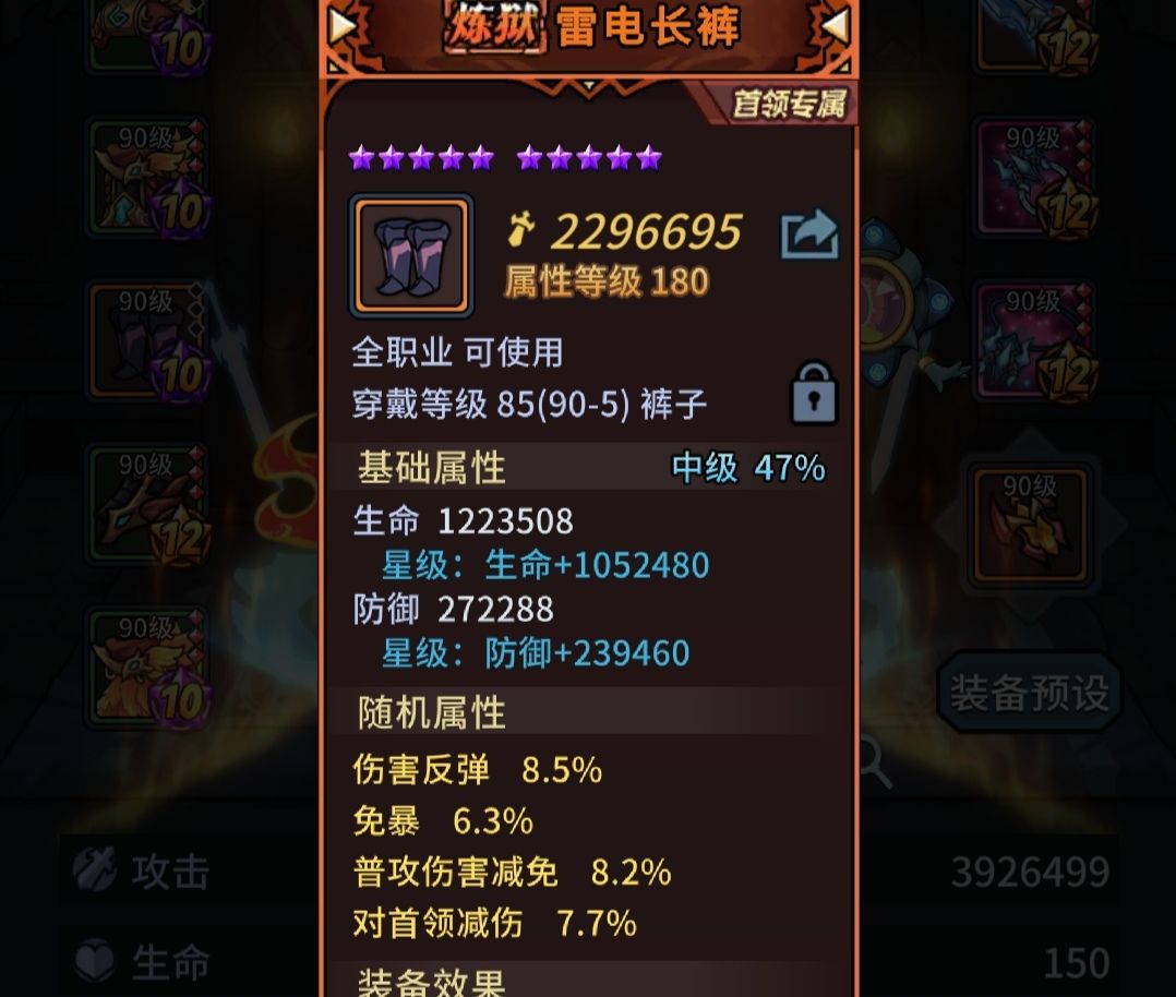 防御装备词条要洗首领伤害降低+伤害降低/普攻伤害降低+生命,这样剑士可以压30%血量,新区用阴阳项链要洗闪避,闪避面板40+最好,新区鲨鱼一般都带回血,所以词条有闪避就可以了。