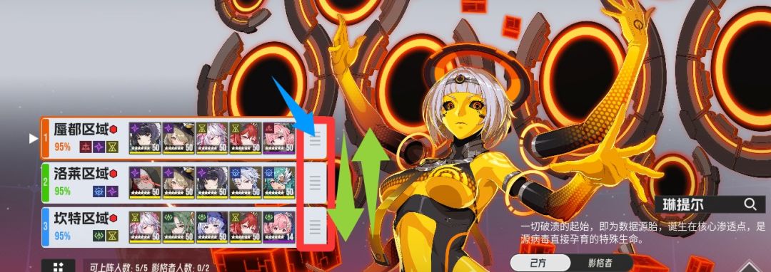 红框所选:每个颜色阵容的三个横杠,是可以点击上下拖动的。