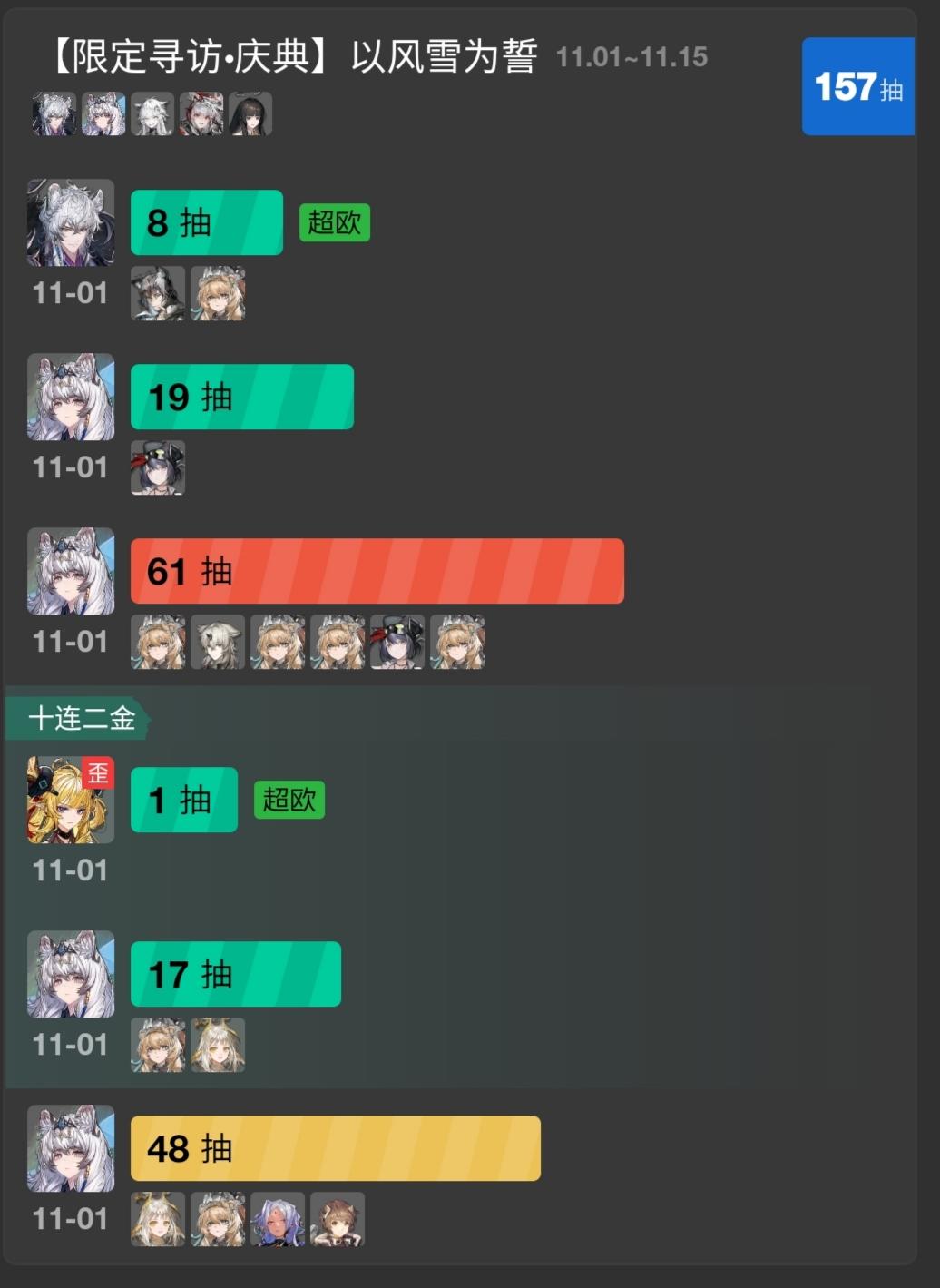 本来预算是120抽的,结果出了3个初雪,new惊蛰