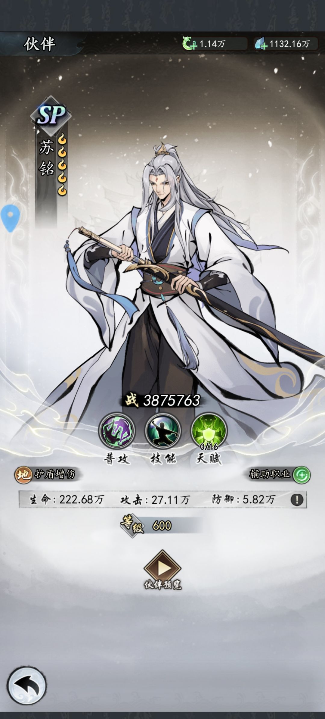 接下来的思路就是强化石昊的保命和输出能力,所以苏铭就是不错的选择,地系辅助,白板可用,九星就额外获伤害,命中加成。