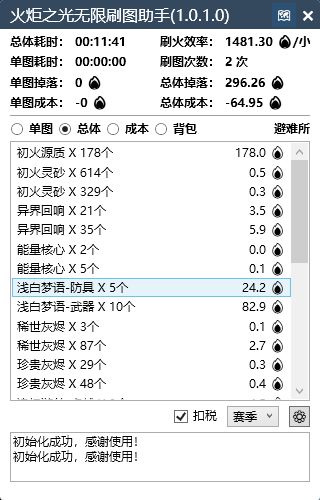 效率计算:自动计算单图耗时、刷火效率(如单位时间掉落量)。