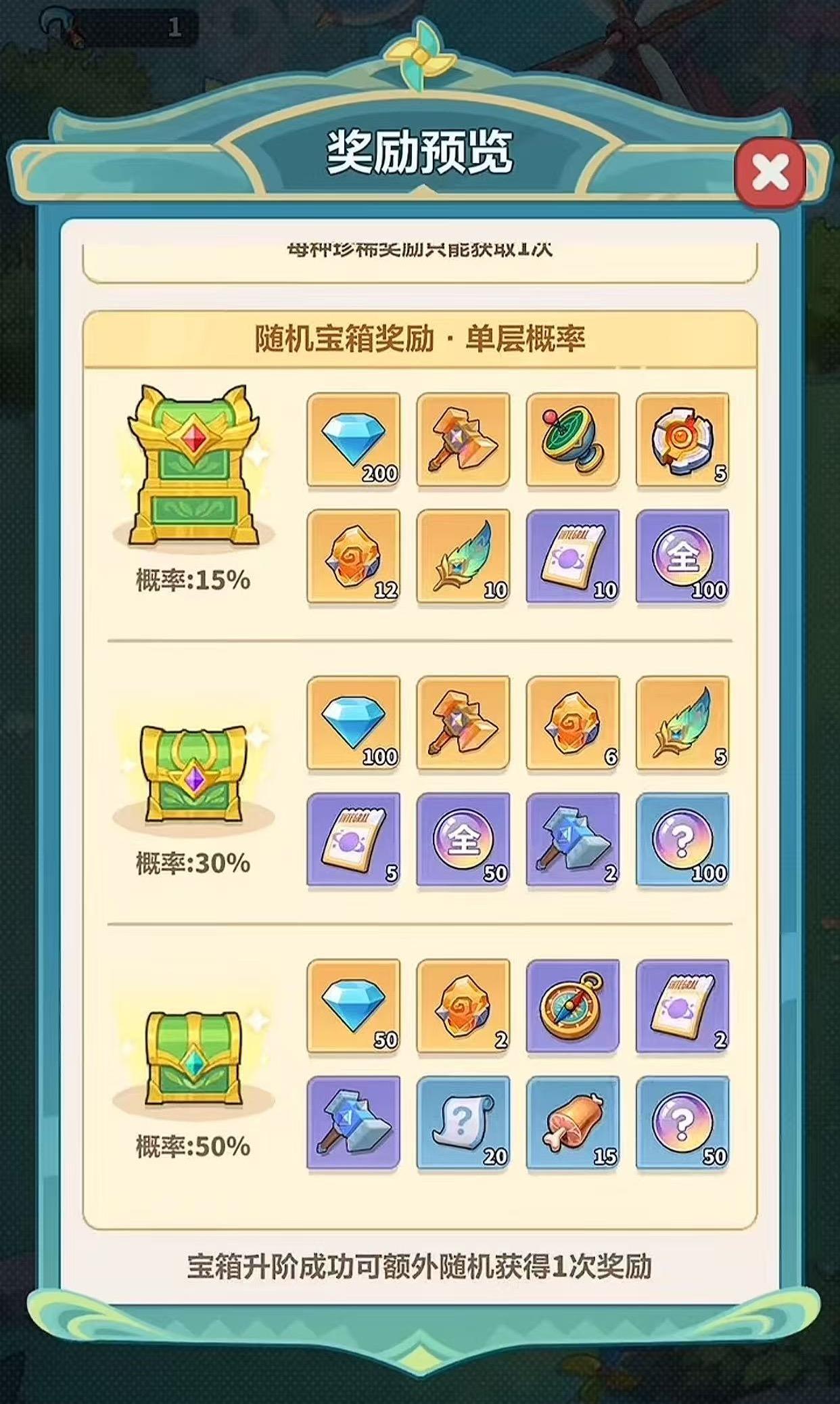 • 不同玩家策略:平民玩家主线通关不多的情况下,出现传送门就直接进入下一关,保证能做完全部轮次,拿完所有奖励。如主线通关200以上,可在前面10层开到宝箱后就进入下一层,最后几关再将格子全部开完,以获取更多奖励。