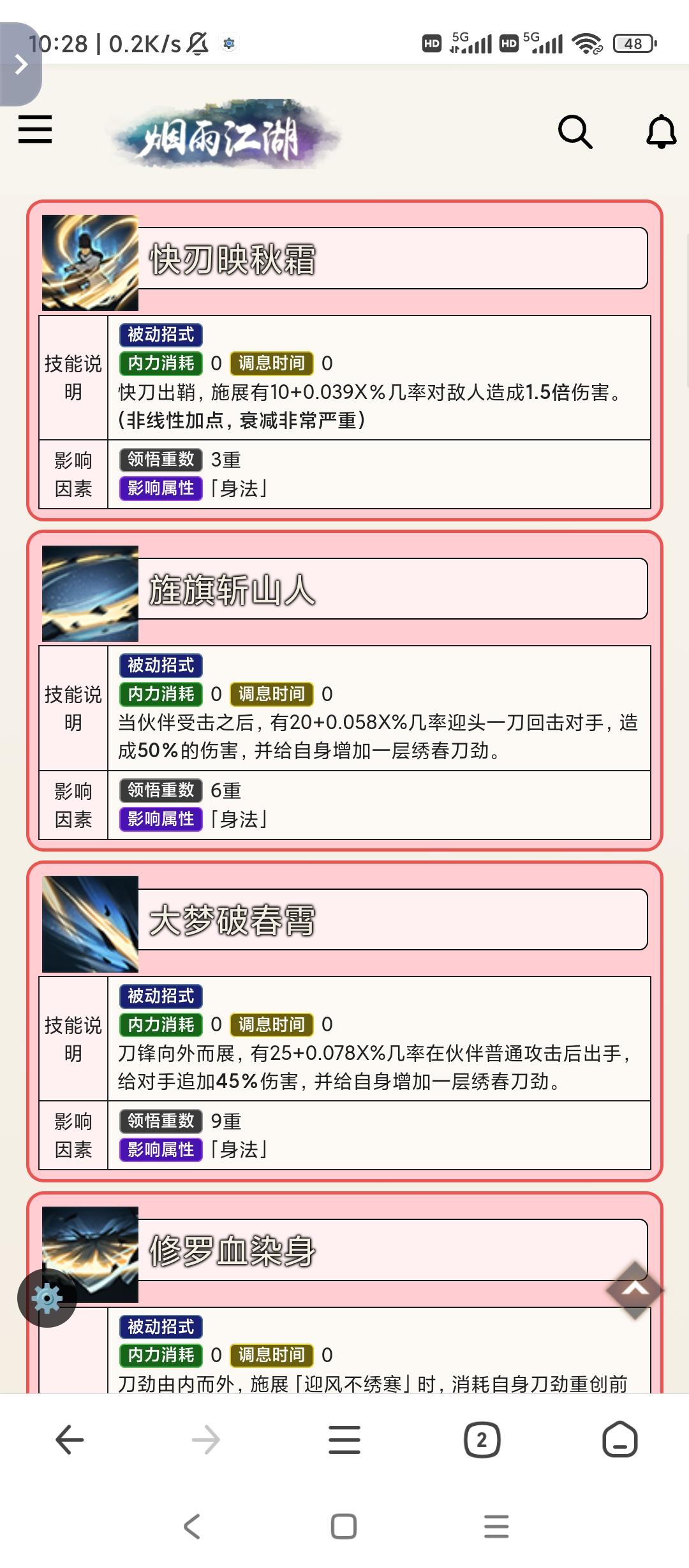 四技能协战必须对方无闪避、无招架,且随从攻击时无连击,这个也是要求很高,而且协战概率非常低,相比紫阳拳的100%协战和65%伤害,这个显然不够看