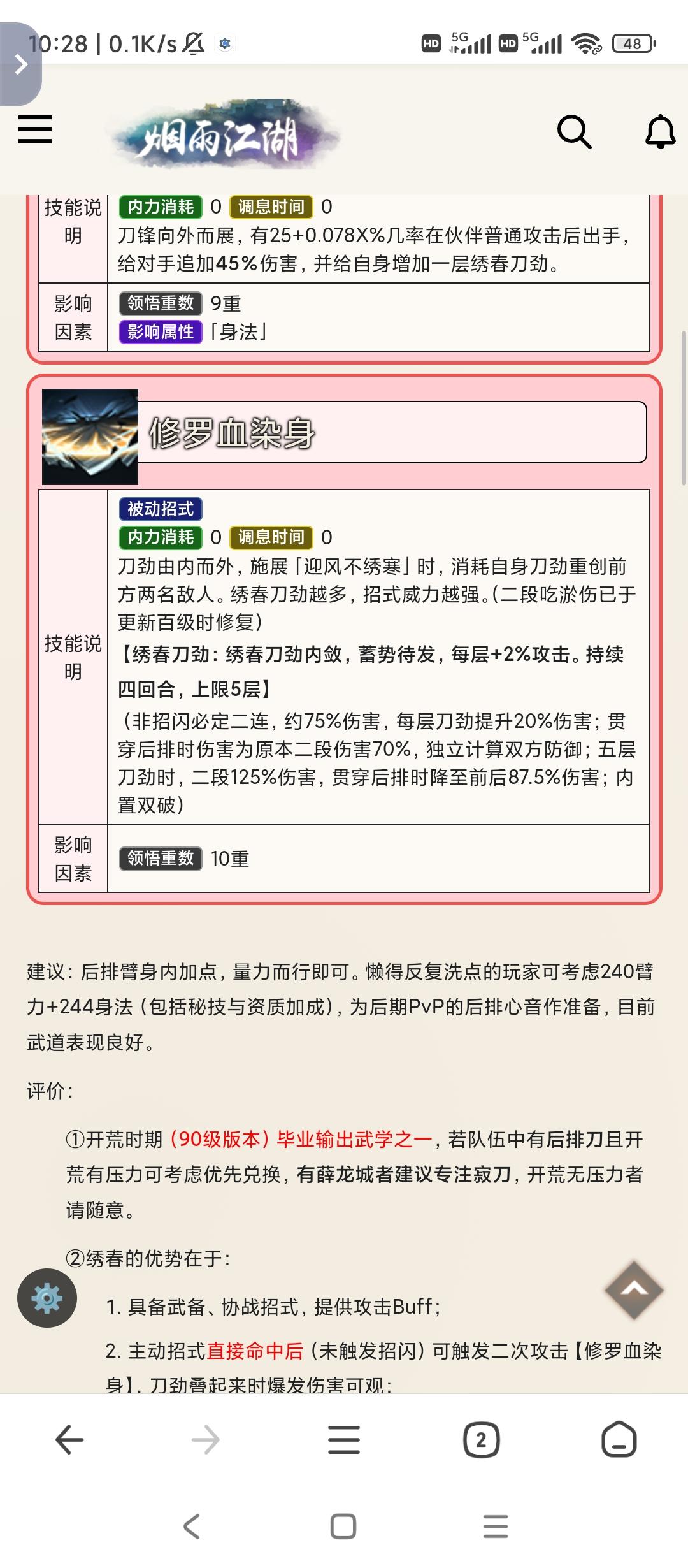 五技能变招只能打一列,如果一列只有一个目标,实际收益很低,而且对后排伤害高度依赖刀劲叠层,不太好用