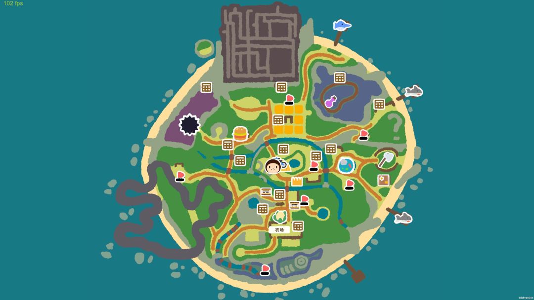 如图所示,游戏是在一座小岛上,范围十分广阔,在没有载具的帮助下走起来还比较费力。地图虽然不小,但里面的内容非常充实,填充了许多玩法和局内互动。