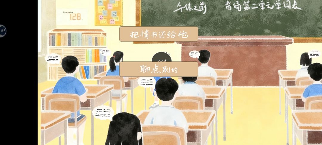 去隔壁班最里面那个男的还情书,这里不用担心聊错人了,没时间聊天也能把情书还给他。解锁小宜的词条。以及回到走廊之后往右边走,办公室的窗口上面还有一个心电图。